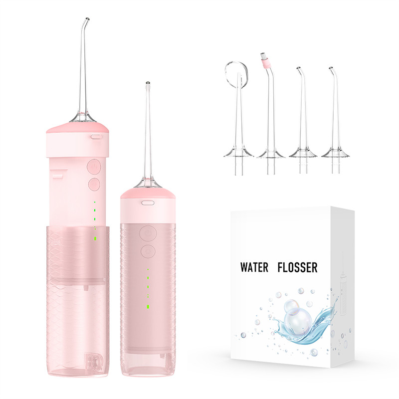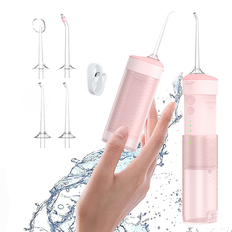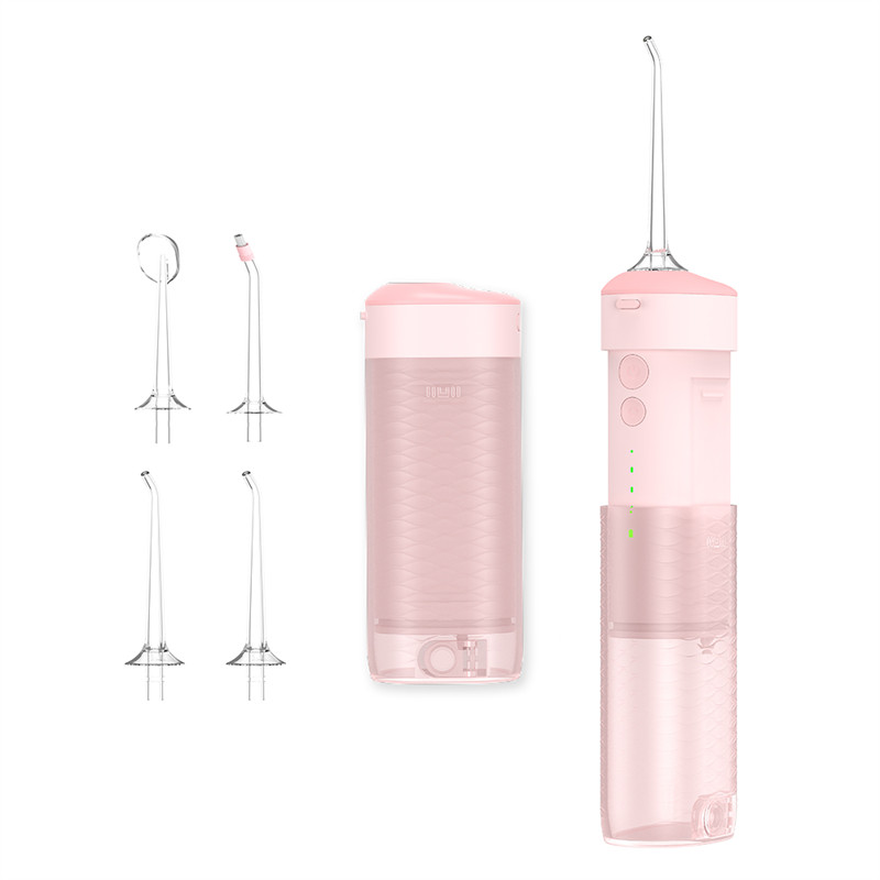 4 ။ အိမ်သုံးအိတ်ဆောင်ရေပိုက်ရှိအိမ်သုံးရေ flosser တွင် 2 * Standard Jet Tip, 1 * orthodontic အစွန်အဖျား 1 * လျှာသန့်ရှင်းရေးအစွန်အဖျားပါဝင်သည်